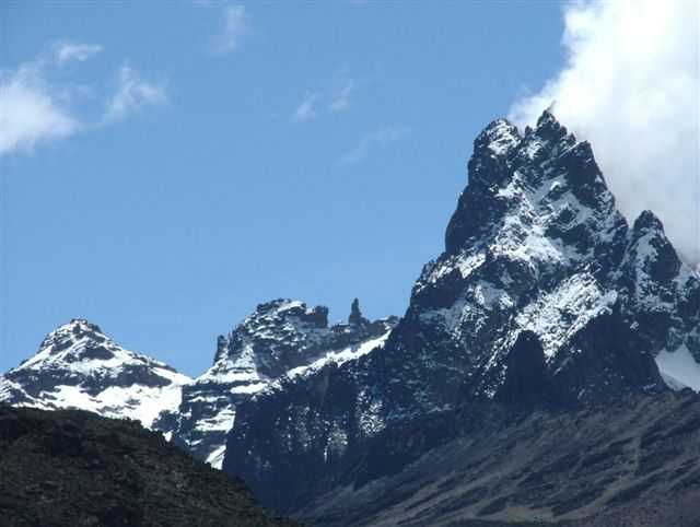 From left to right: Point Lenana; The Flake behind Point Thomson, Nelian (5188m) and Battion (5199m), Mt Kenya