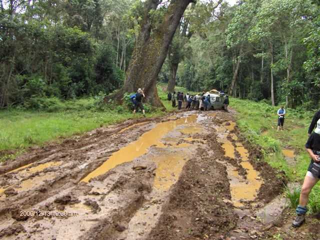 The 2 off road vehicles were not in the best of condition – we had a hair raising 2 hours on unbelievably bad rutted dirt roads getting hopelessly stuck on at least 2 occasions. If it hadn’t been for our very willing and helpful porters we would have struggled to have got to Nairobi that night.