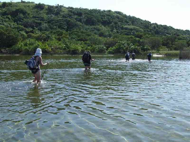 On the trail passing a fish trap - My boots are leaking said one of the hikers.