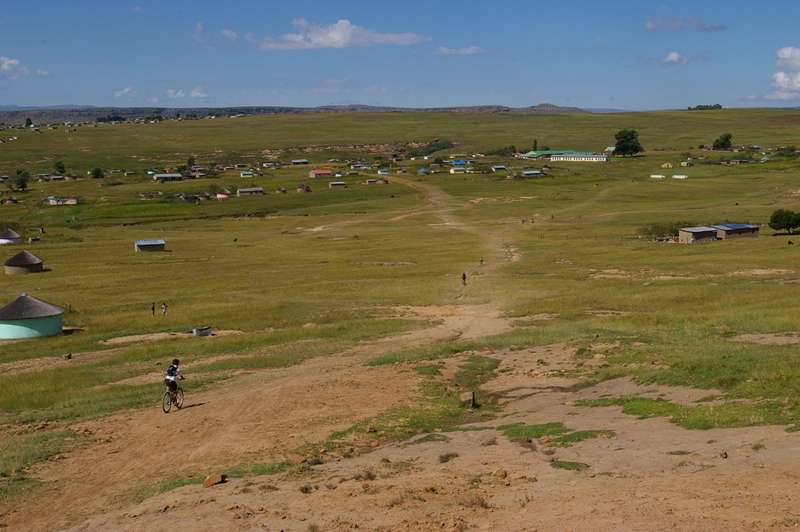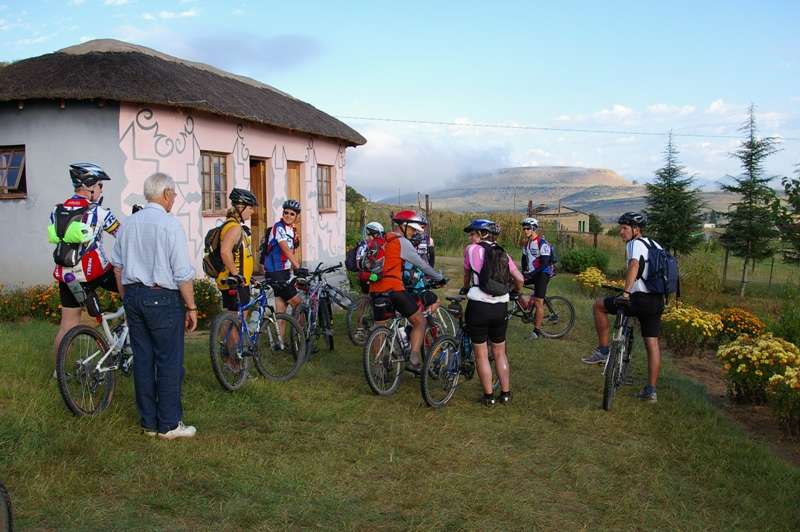 It was Day 5 and again we were on our bicycles just after 7 am heading this time for Matatiele. The day was spent on gravel and dirt roads snaking through rural communities with the Drakensberg mountains in the distance on our right. Our presence attracted much attention and excitement amongst the communities, and the young children in particular. Our final destination was an informal settlement on the outskirts of Matatiele where the community manages the Masakala Lodge, established by the local tourism authority. Though there was no power supply at the clean and well-maintained accommodation, the paraffin lamps provided us with romantic lighting, the gas geysers ensured that we had plenty hot water for showers and the gas stove produced hot traditional food.