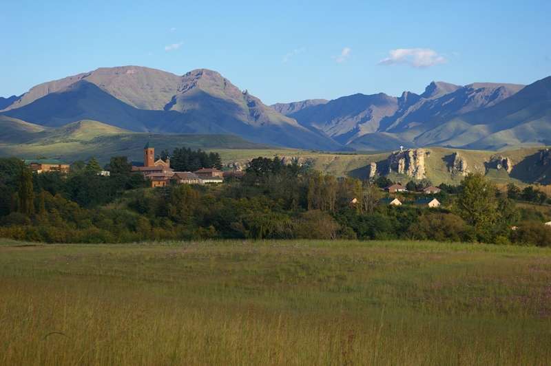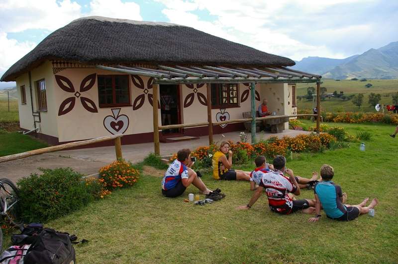 At Masakala Lodge we were joined by Pheta, our guide for the next two days. As he lead us out of Masakala the next morning many local women excitedly waved and ululated from their homes. It was their traditional way of acknowledging our presence and welcoming us in their community. We rode through the streets of Matatiele and headed out towards the Drakensberg mountain range. Again the day was spent on gravel roads but the roughness of the road surface slowed our pace. Just before reaching our destination we paid a brief visit to the Mariazell Mission which has an imposing church building built by polish master craftsmen early in the last century using locally quarried sandstone. It is prominently located in the well-maintained grounds of a privately run boarding school. Not far from the Mission but up a mountain was Malekhalonyane Lodge, a similar community-run lodge used mainly by hikers and visitors to the Malekhalonyane Nature Reserve.