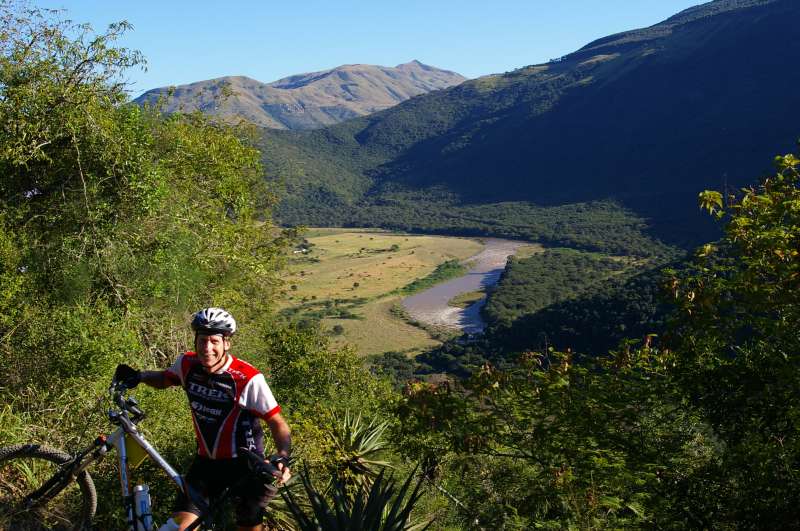 My mountain bike recorded 528 km over the 8 day journey from Pietermaritzburg of which less than 10 km was on blacktop road. The route followed the Freedom Trail that was designed and developed by the Waddilove brothers, one an environmental lawyer in Cape Town and the other a Donnybrook farmer. Their brainchild is a 2300 km mountain bike trail between Pietermaritzburg and Paarl over dirt roads, 4x4 tracks, footpaths and cattle tracks with facilities for overnight stops along the way. In June each year a group of intrepid mountain bikers set off from Pietermaritzburg on an incredible journey, called the Freedom Challenge. Their objective is to be the first to Paarl.