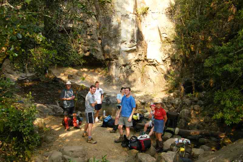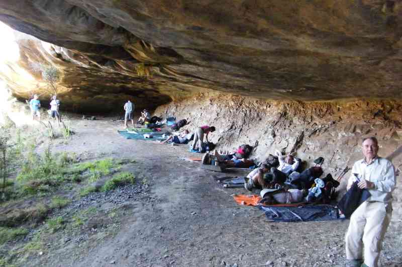Zulu cave is a large cave, with a waterfall over the front of the cave, so water is very close, however the floor is very dusty, so one needs a good ground sheet to sleep on to keep all you kit out of the dust.