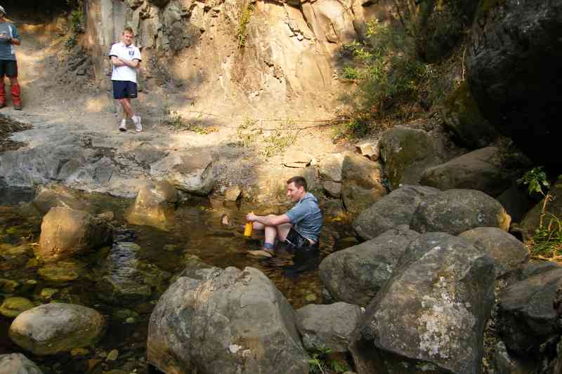 The day was warm , and our first stop was Crystal Falls for a break, and to refill water bottles. A good practice in winter is to fill water bottles at every stream, and also to drink. On never knows what the next stream my bring, no water, or dirty water, so always stay prepared Also it is a good idea to be careful when filling the water bottle, or getting to a “better place” to get water that you do not fall into the water !!.