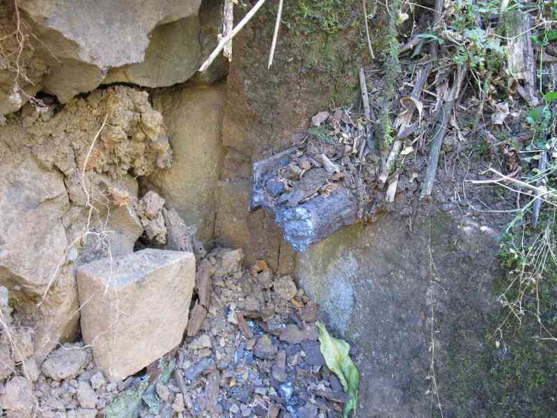 The road pics show the typical track throughout this walk going from shade into sun passing through plantation and other sections with wild vegetation (doesn't look indigenous so is most likely growth that appeared after clearing). In some areas along the route the earth bank had been retained by metal railway sleepers held in place by lengths of rail, recently some enterprising soul has brought in a cutting torch and cut out the bulk of the lengths of rail leaving only the stubs which are concreted in. Neville noted that trail direction boards mounted on pedastals which used to indicate the various trails have also been vandalised and have "disappeared".
