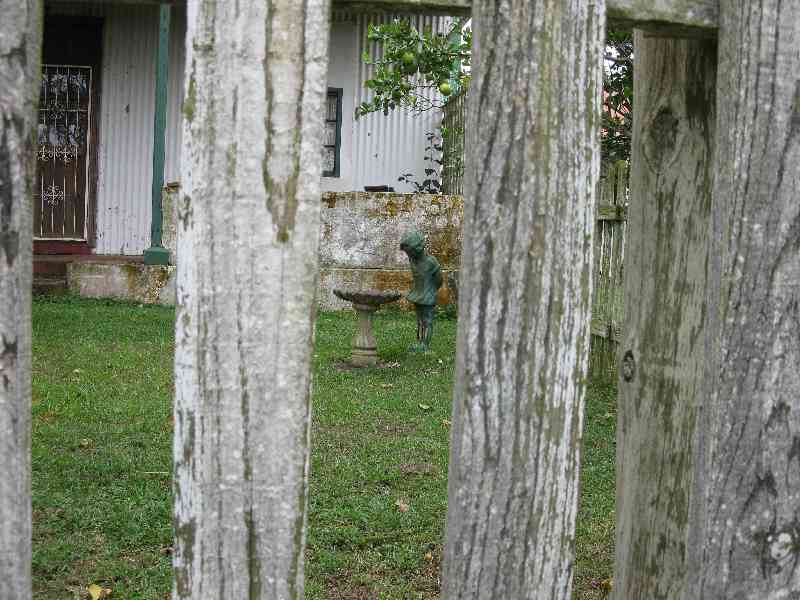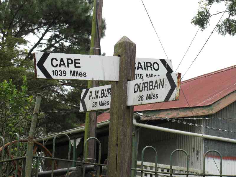 A little farther down the road is a one-half scale model of the first train (pic 4) to operate between Durban Market Square and the Point (at a cost of one shilling and six pence return). My artistic efforts are portrayed in the next pic (pic 5) where I thought the slatted wooden fence made an attractive frame for the little statuette in the garden, moments after I took this pic a child's head appeared in the window of the house and while I would have loved to have reframed the pic to include the child I thought that may have been intruding on the family's privacy - oh these great pics that slip away... One thing we cannot say about Max's new hike is that it is not well signposted - see pic 6 below!