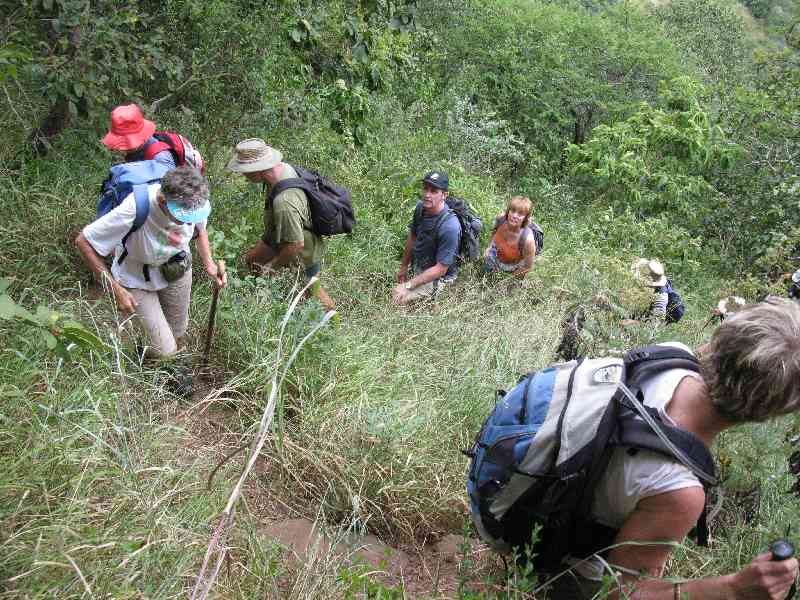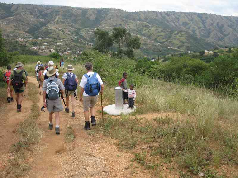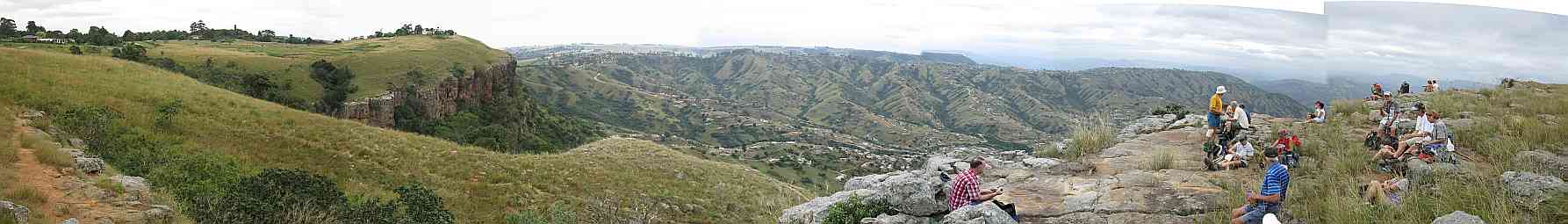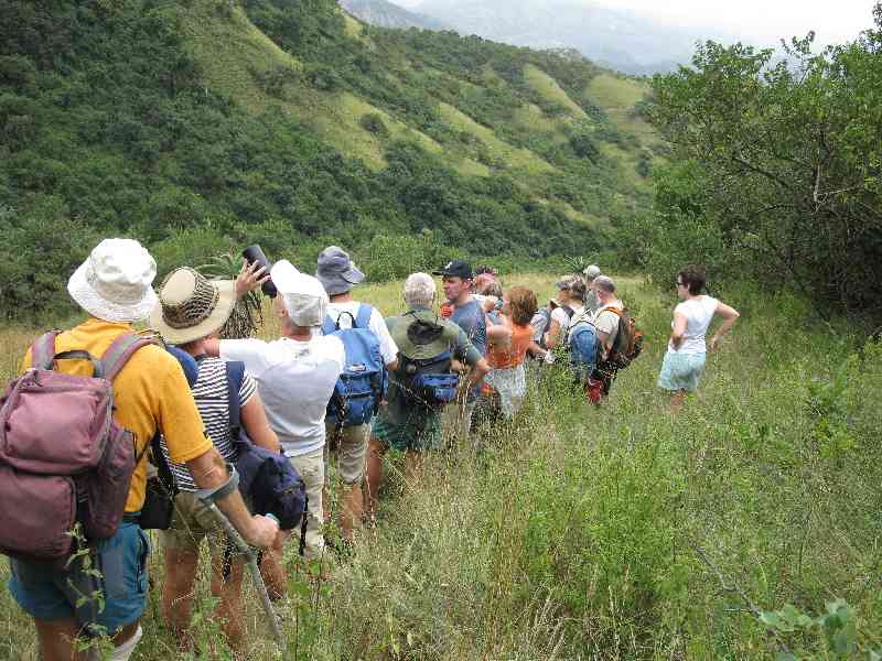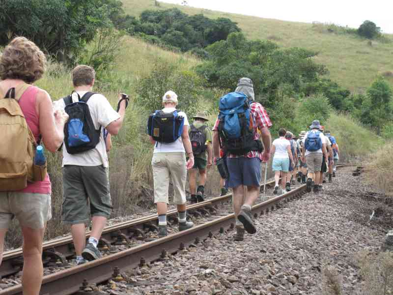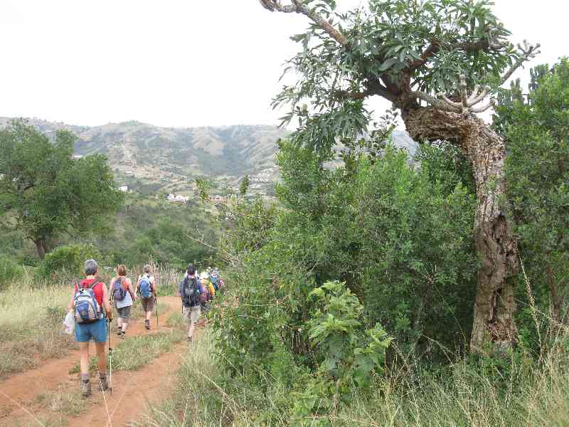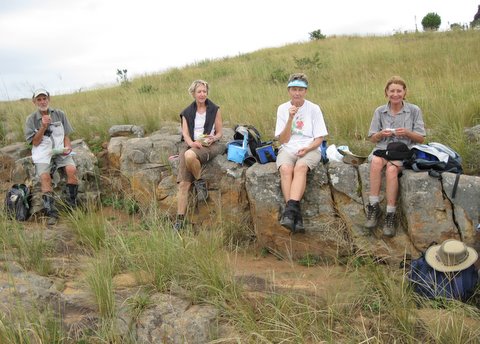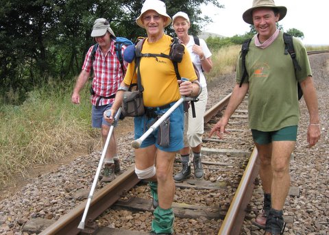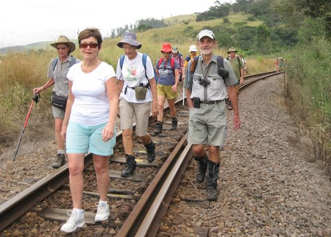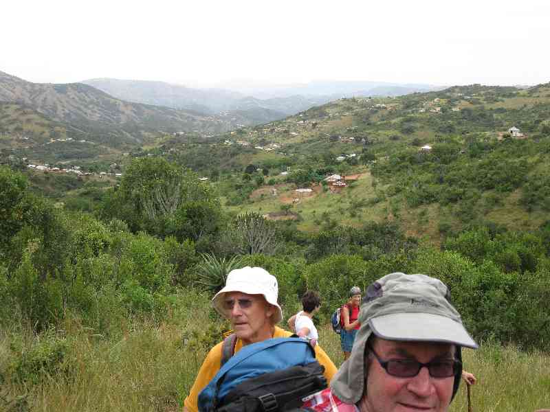 As I was relaxing back at home after this hike, soaking my aching knee joints in a steaming hot bath, I noted that my wife had removed my hiking clothes and placed them on the veranda, mumbling about bio-hazardous waste. Well when you hike in a place that is called the "Valley of a Thousand Hills" don't expect an easy flat hike - not that this hike is not enjoyable, just challenging, and it certainly is a great privilege to be able to hike in such countryside and to have such a competent and knowledgeable guide as Max. It is just difficult to get sympathy when you are hiking alongside the likes of Keith Ashton who hikes these days with the aid of crutches. However Margaret was very compassionate and as sweeper made sure that I did not get left behind on the last steep downhill which was where the pain caught up with me (you will note my photo taking stopped shortly after the Inchanga station!).