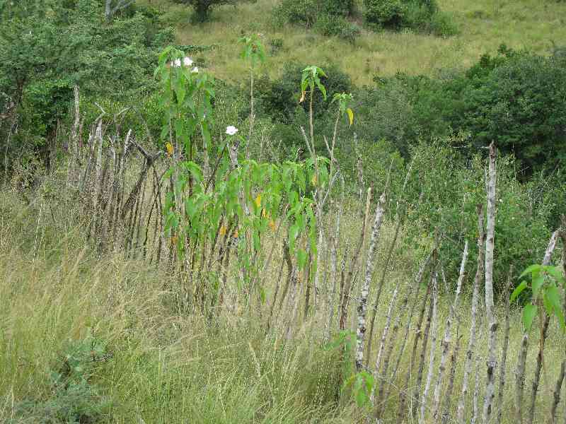 Coming out onto the higher area we came onto a dirt road (pics 1,2 and 3 below) into a settled area. Our passage was watched warily by this local hound (pic 4) (a good looking hound too). A little further we passed alongside this dwelling (pics 5 and 6) made, I assume, from sun baked mud bricks, also what I found fascinating was that many of the rough fence poles (pic 7) were growing!