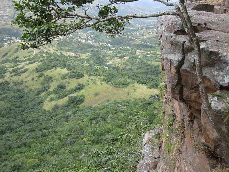 Back into the thicket and while on a drinks break (pics 1 and 2 below), I captured this panoramic shot of the view we had (pic 3). To our left was the route we would take past this mountain of rock rising out of the ground, my pic (pic 4) does not show the whole mountain but zooms in on quite a substantial tree seemingly growing directly out of the rock face and clinging on by its roots. Up we climbed (pic 5), being rewarded at every breather stop by an increasingly elevated view of the valley (pic 6). Towards the top of our climb I photographed this little bundle of delicate flowers, mainly as an excuse for a longer stop.