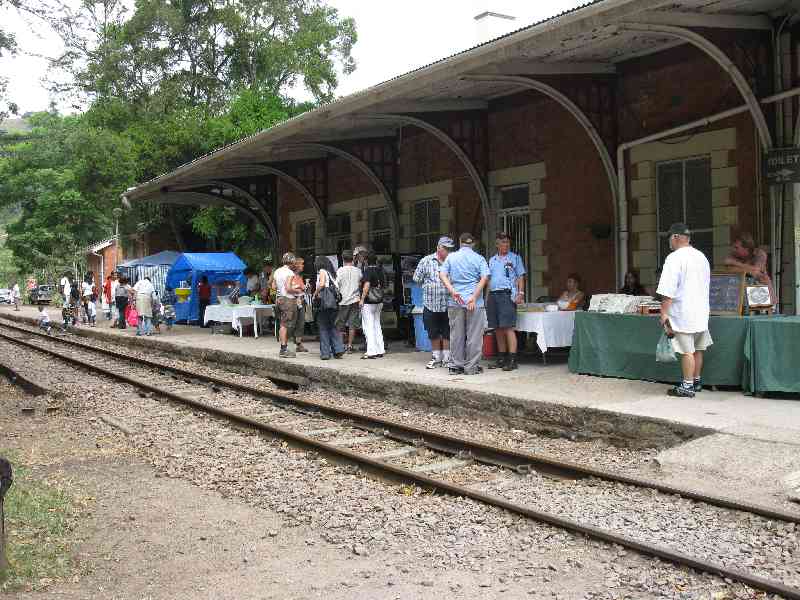 Then it was off again and along the road Rose found an interesting caterpillar (pic 1 below) with an imitation pair of "eyes" making him/her/it appear far larger than it really was, I took the pic but was not as keen as Rose was to hold the rather scary looking caterpillar. Change of business plan: "InKhuKhu/Chickens for sale sign (pic 2) along the road over-riding the previous "dog food for sale" sign. And then we were at Inchanga station (pics 3and4) where Umgeni Steam Railways have a train outing from Pietermaritzburg and a general fun atmosphere prevails around the station with various stalls and pony rides, our hiking group is seen lazing in the shade (pic 5). The old station clock permanently shows the time as 12:28 (pic 6). While also lazing about in the shade by the side of the tracks I clicked the accompanying photo (pic 7) of an anonymous child concentrating on walking along the rail.