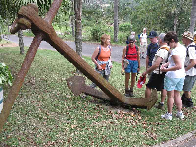 After crossing the "old road" (Comrades Route) to Durban we got our first glimpse of the Valley (pic 1, below) but before going down into the valley we walked along the old old road and spotted some of the historic houses along it. First place of interest is the premises "Ravenscoft" a tiled wall panel (pic 2) proclaims that "On a clear day you can see forever". Of interest here is the large iron anchor (pic 3) which reputedly belonged to the HMS Birkenhead which in 1852 sunk off Danger Point after leaving Simonstown, because the Captain was trying to make speed by hugging the coastline - the significance of this tragedy lies in the discipline shown by the troops on board in remaining orderly and obeying, to the man, the order "women and children first" which to this day has become known as the "Birkenhead Drill" immortalised in Rudyard Kipling's words in his ode to the Royal Marines "Soldier an' Sailor too":