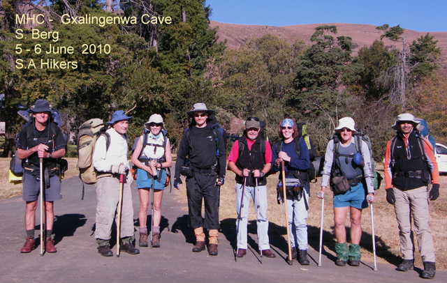 The Southern berg has many overnight caves for hikers to spend the night in . One of the most protected, and one of the deepest caves is Gxalingenwa cave in the Cobham area. This is a cave above the 2000 meter level, high up in a Sandstone band, with a small stream running through it . The situation of the cave does not give views of the valley below, or of the sunrise unless one does a good walk to a more open view site. However , it does have a big rock just out of the cave, where on a good evening one can enjoy real open air sundowners, share stories of the day, and sip the night in. It was to this cave that Keith led a group of 9 hikers from MHC and MBP for the week end. One hiker had come down from JHB to do the hike !!!
