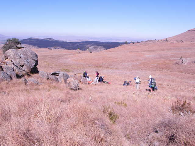 We had checked with Ezemvelo about veld fires, and told that a large part of the area we would walk through had been burnt by a runaway fire a week ago, but there was no danger at the moment.