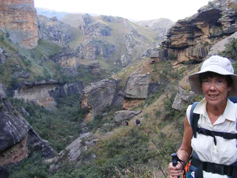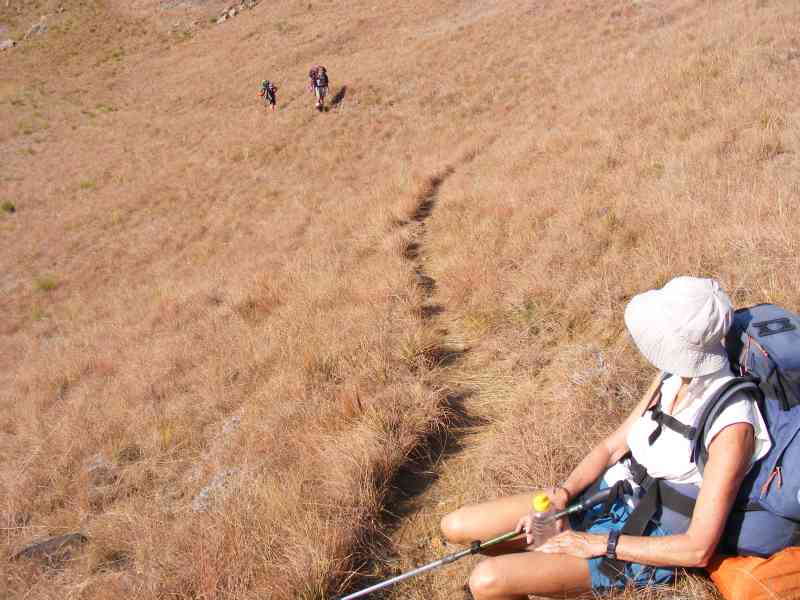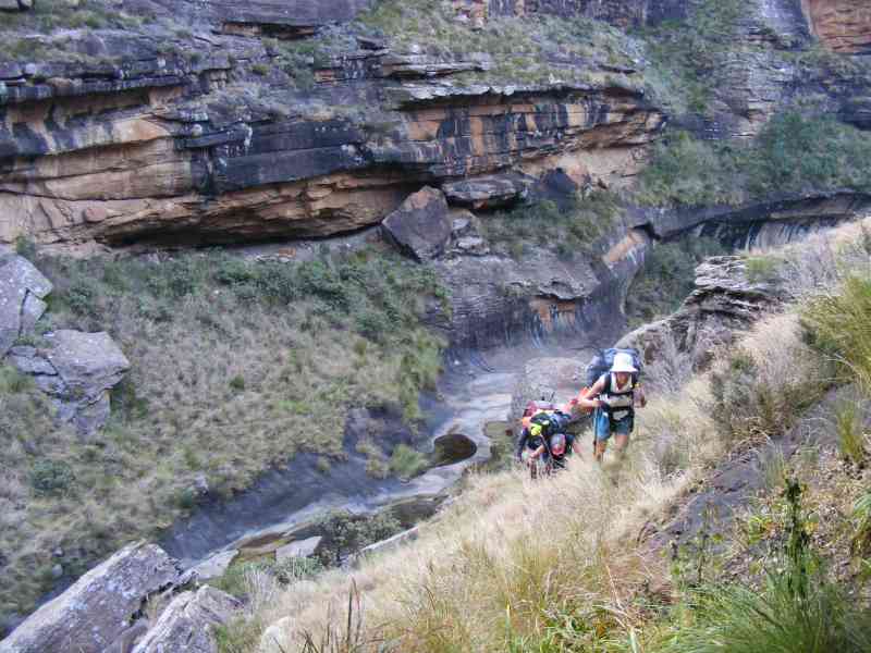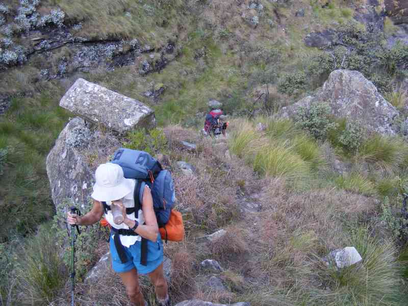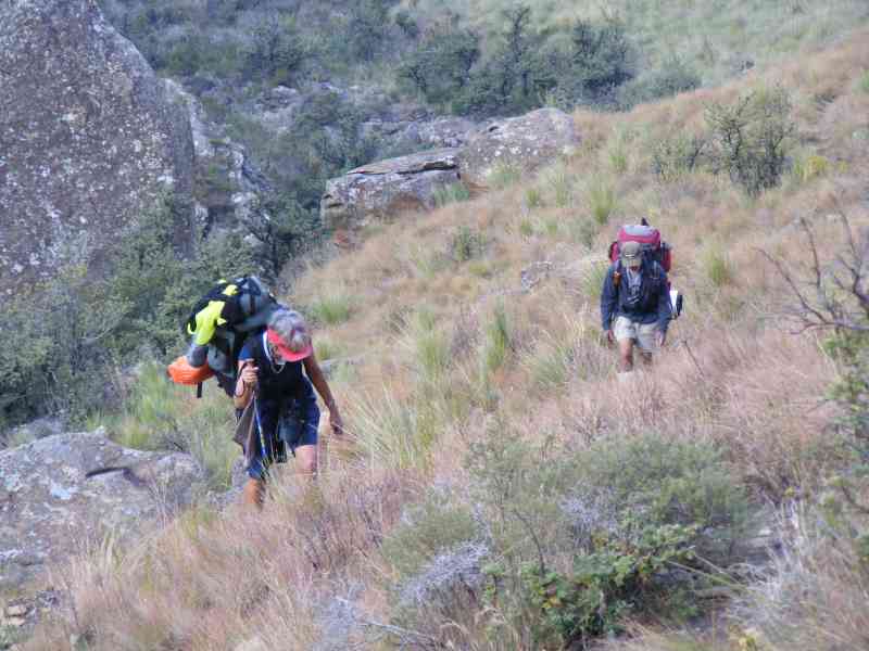 Packing up was indeed an interesting experience as the wind kept tugging at everything we tried to stuff in our backpacks. The descent from the cave was slow and cautious as the wind was still howling - we hadnt been able to attend to our usual ablutions for fear of being knocked over, so a rather grubby group made our way back to Keith and Margaret's Cottage.