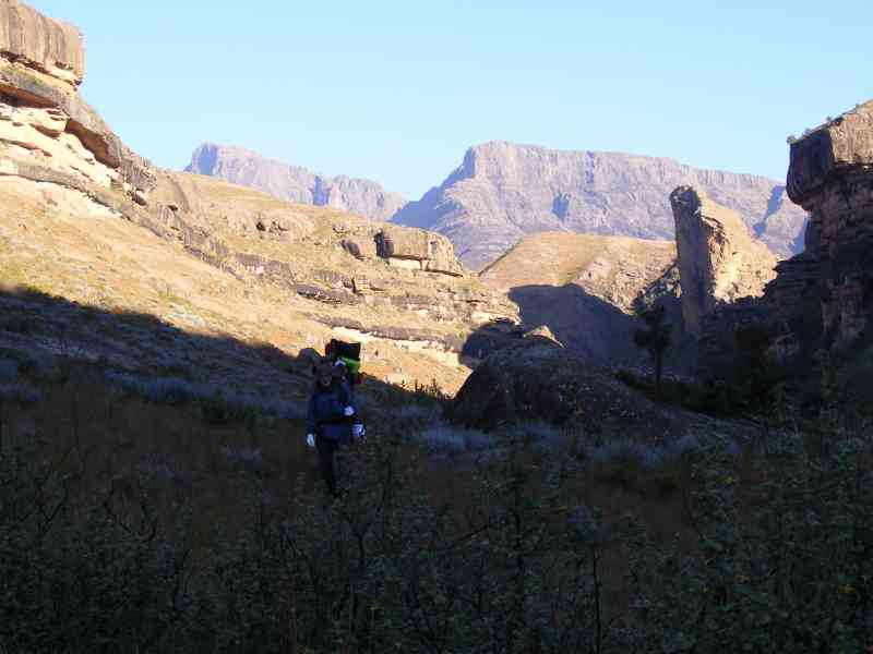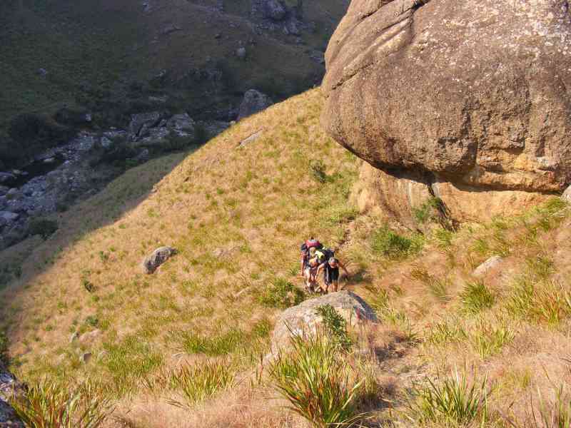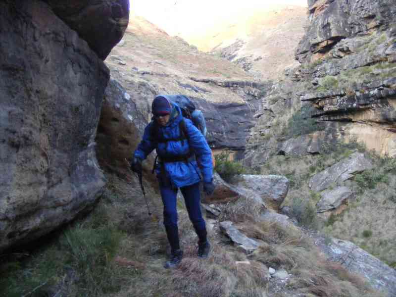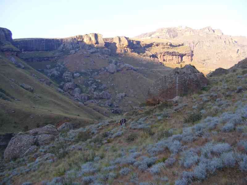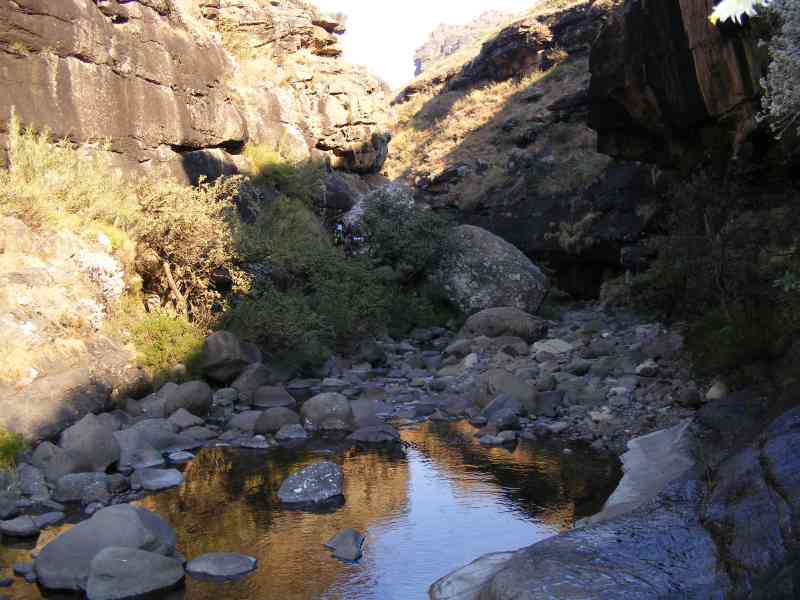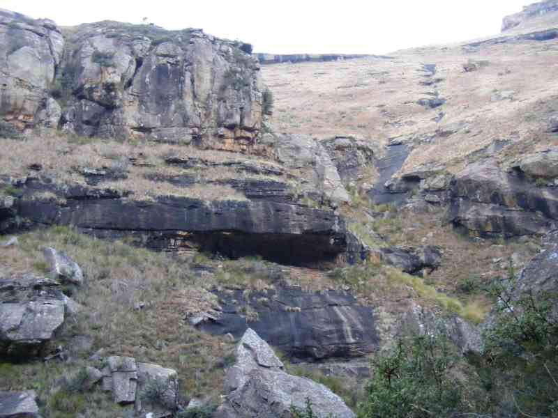 About 2 km before Fun and Verkyker Caves we actually walked through Mzimkhulu Cave which is right on the upper reaches of the Mzimkhulu River (there was evidence of Dagga smugglers previous presence in this cave).