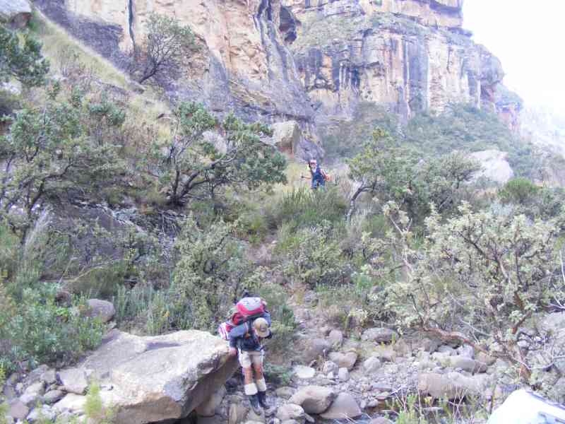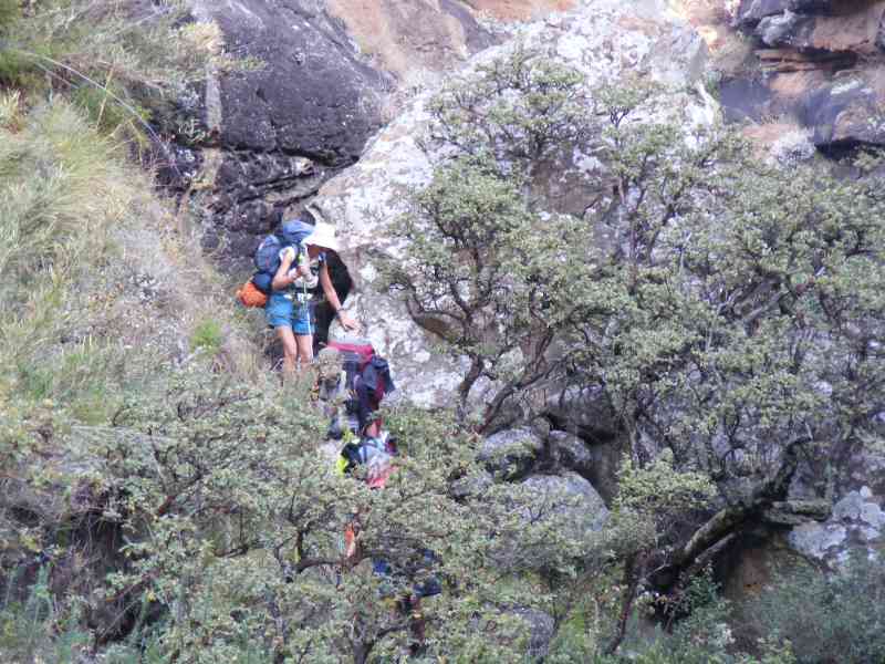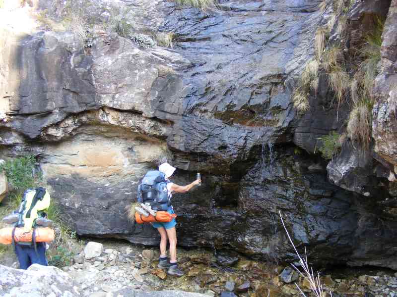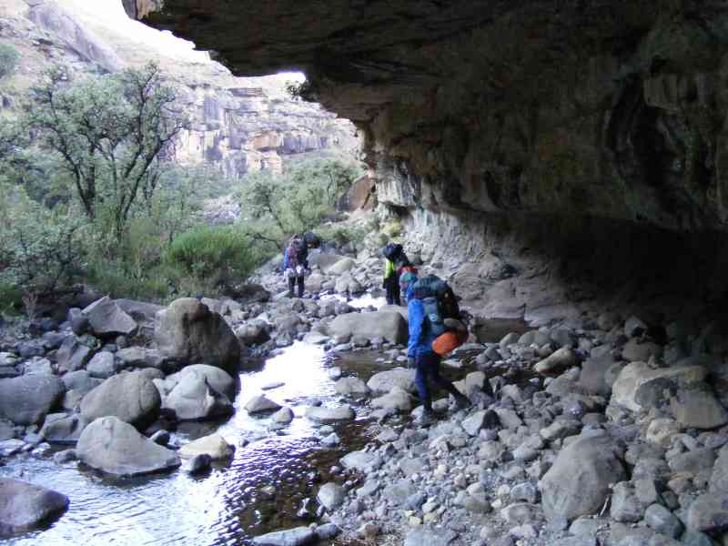 However we needed water, so Max and Keith went down to the river with their 5 litre water bags and whilst down there fully checked out Fun Cave - Keith took his usual photos and confirmed that Verkyker Cave was more sheltered with a much greater overhang, so we had made the correct decision about which cave to sleep in. (But Verkyker is only really suitable for 4 people - Fun cave can sleep up to 12 at a push).