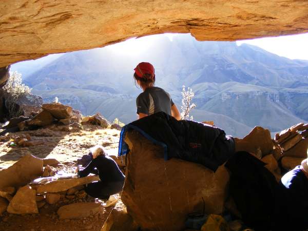 On arriving home after 7 months, my priority was to get onto the hiking schedule and go hiking. This I did with an overnight hike to Tarn Cave. I had walked the path from Sehlabathebi many, many times and stood in the cave mouth overlooking the valley far below, but I had never sat, laid out on the cave floor, hot drink in hand, with the last of the sun's rays washing over me through the Devil's Knuckles, illuminating them as if they were sanctified, setting the young sapling that grows in the centre of the cave mouth, alight, like a candle at the close of day. I was home!