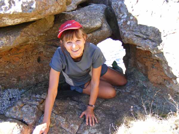 10. Irene on top of overhang above Tarn Cave