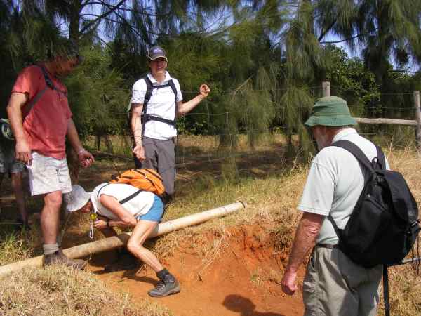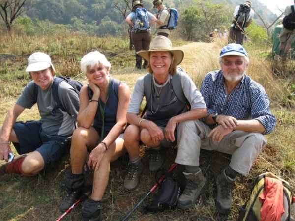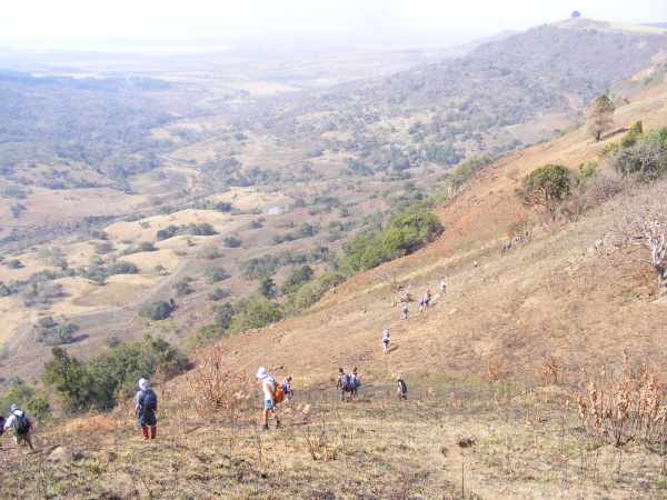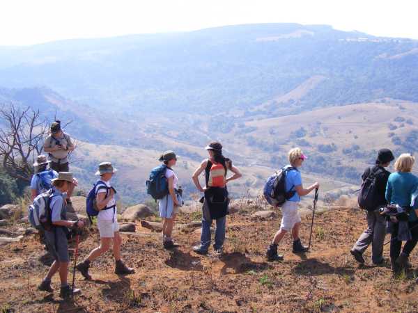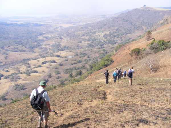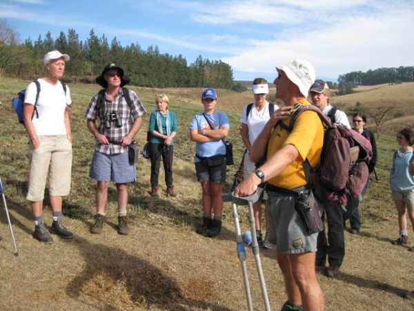 2010.08.15 37 Hikers Leader Cecil Hackney Photos courtesy: Keith Ashton (numbered set) and Roseanne Dix ![]() 1. Happy hikers enjoying the view towards Albert Falls Heres a short version of our wonderful hike at this very popular venue - if you didnt do the hike last year, please have a look at our comprehensive writeup at http://www.mhc.co.za/newsletters/200909SEPT/everdon/everdon.htm As of last year, we were again led by Cecil Hackney - a wonderfully inspiring and knowledgable leader who knows the area so well. Keith organised and co-ordinated the very large and enthusiastic crowd of hikers from Midlands and Durban Ramblers Club...not a task to be taken lightly, and as hikers, we so appreciate all the work put in by our leaders and co-ordinators. A big 'THANK YOU' to Jenny from Dbn Ramblers who is such a dynamic and enthusiastic co-ordinator. This years hike was done in reverse, so avoiding the onerously daunting hill at the end of the hike which saw a few members previously faltering , so this year we could breeze down back to our cars with ease. As it was again very hot, the hike was shortened to 13ks - also to give us time to repair to Yellow Wood Cafe for much needed refreshment. Our grateful thanks to the owner of Yellowwood - Sandra Murphy - for allowing a rather scruffy bunch of tired hikers to enjoy the late afternoon sunshine on her lawn and to be entertained by a special concert performed by the KZN Philharmonic Orchestra and local artists including Jason Hartman. Thanks again Cecil for leading a great hike - you have gained some more lady admirers. We are so lucky to have such selfless leaders who give up so much time and put so much effort into our enjoyment - and the cost? Less than an icecream a month and far better for us. Roseanne Dix 2010.08. ![]() 2. Looking down onto Karkloof Spa Land ![]() 3. View onto Kakloof Valley and Albert Falls ![]() 4. Downhill a bit - Karkloof Spa below and Albert Falls ![]() 5. Still going down ![]() 6. Making our way to view the junction of Umgeni and Karloof ![]() 7. Going up a bit ![]() 8. Cecil (leader) and Sebastian helping Margaret to get under ![]() 9. Warwick's turn - note Neville's stylish bush-hat ![]() 10. Gill tending the start of a blister ![]() 11. Entertainment by local paragliders ![]() 12. Keeping an eye on our hikers ![]() 13. Why hike when we can glide ![]() 14. New-born calf - guarded by mum ![]() 15. Getting close to the end of the hike ![]() 16. Back at the vehicles ![]() A few words at the start of of the hike ![]() ...............well maybe a bit of this thrown in !!!!!!!!!! ![]() Happiness is___hiking with good friends - Rose and Jenny ![]() happy hikers ![]() welcome tea break ![]() a bit of culture to end off a wonderful day |