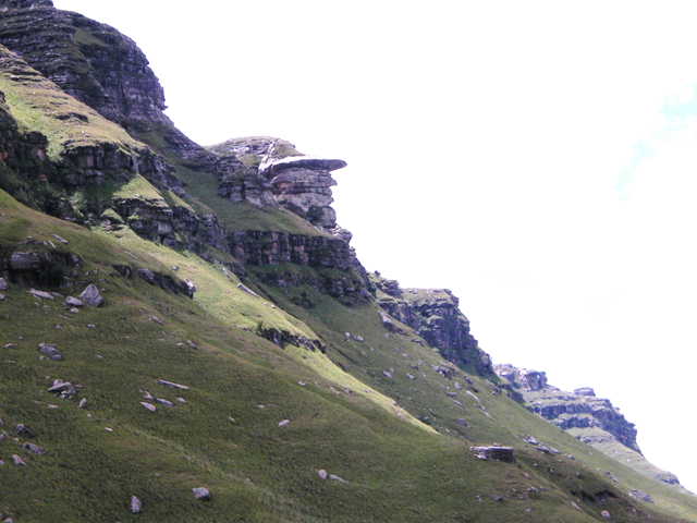 Not far from the Kamberg office we came across 2 magnificent eland on the side of the hill. They were totally unconcerned about our presence so close to them. We were following old Game Tracksthat climbed and traversed steadily up the side of the mountain. We stopped for our first rest at the base of a very steep rocky hill.