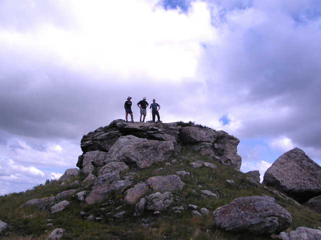 After lunch we started at a higher pace to get to the cave as soon as possible. Down in the valley, the unmistakable shape of Kamberg Hill came into view. It was from the naming of this hill that the area got its name. . After a steep pull, we regrouped to catch our breath, and get the party together again and have a last look back along the way we had come, before picking up the pace to our cave. Cresting the last climb, heavy storm clouds built up around us, however the cave was not far away, so we were not too phased by the weather build up.