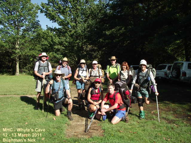 A group of hikers from MHC and MBP clubs met at the Bushman’s Nek offices of Ezemvelo KZN Wildlife offices to fill in the required Mountain Hiking Rescue Register, and then set off for the very comfortable Whyets Cave . The cave is not very far away, but the climb seems to go on and on. Off course when you come home, it is downhill all the way.