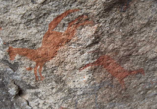Not far from where we stopped for lunch was a cave that was visited thousands of years ago by the long gone San bushman people who left wonderful paintings of their life and times.