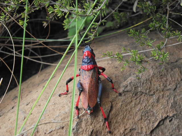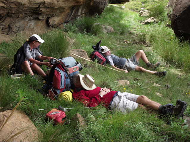On a rock nearby sat a very brightly coloured grass hopper, catching the lunch time sun. Meanwhile round the other corner , a serious lunch time “snooze” was being enjoyed by some of the hikers