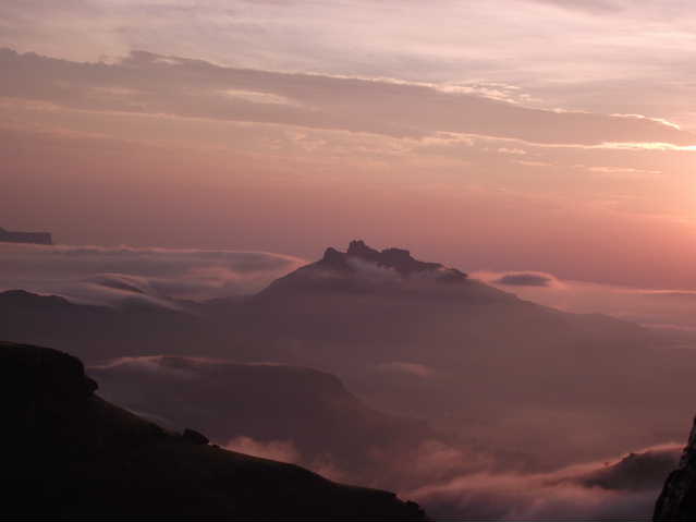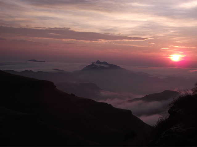 Sunrise in the Drakensberg can be a dramatic time of day. At previous visits to this cave I have experienced wonderful sunrises from this high setting, see my website at www.bergfree.co.za , see Newsletters 45 and 88.