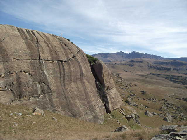 Near the top a large rock wall seemed to have a cap on , as a balancing rock perched on the top of this large rock face. Then suddenly we were looking down the other side into deep and far spreading valleys of the area.