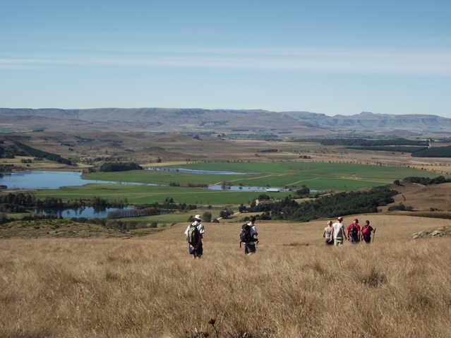 Then on the way home, we turned and went down over the brown grass hills of the Nature Reserve, and looked down onto the green , irrigated farms of the Himeville area. Dairy is a big of the farming activity of this area, and winter feed needs to be irrigated to produce fodder for the cows. It was a great contrast, and a very peaceful scene to come across.
