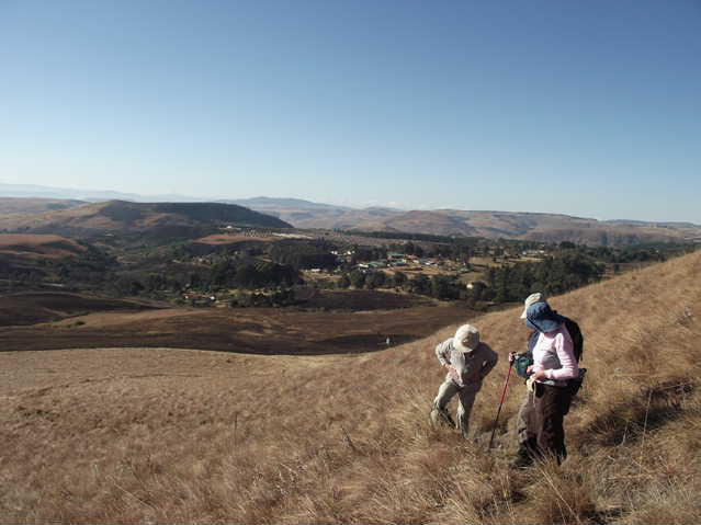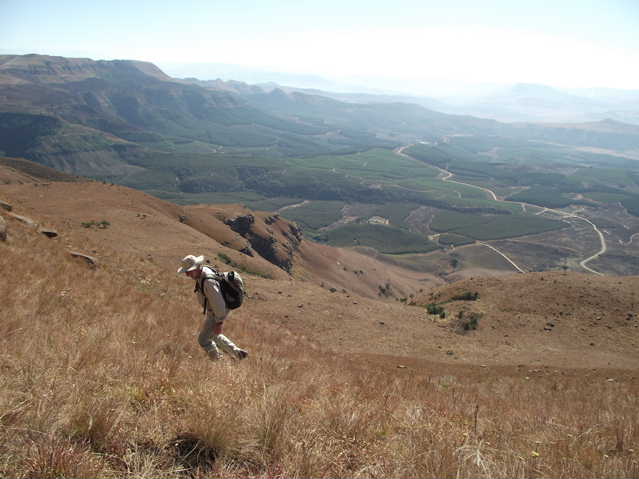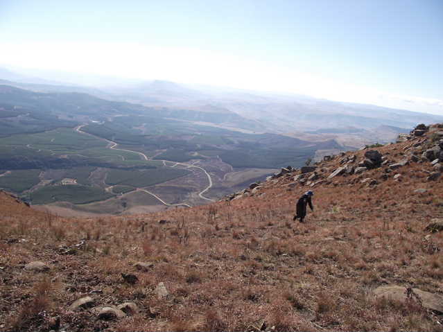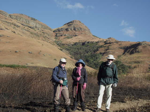 The morning was fresh, and clear, with slightly nippy breeze snapping at us all day. I have not done this hike for many years, however as we hiked, old memories started to come back. In one place the path disappeared completely, and after a short scout around, we found it at a higher level. There seemed to be no logical reason why it should just stop where it did. Later , we decided to do a “short cut” up the slope to get to the summit quicker – just remember there are no “easy short cuts” in the berg. The path was longer, but may have been easier. The view was a bit hazy in the distance, but one could still get an idea of the surrounding countery side.