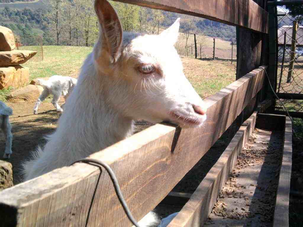 Nanny goats with their kids in pens were observed whilst we ate cheese and lunches on the grass lawn.