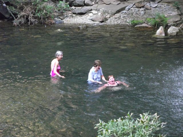 Later in the afternoon we headed back to the cave, and on arriving at the pool, it was boots off for Margaret, Penny and myself and into the icy cold water. What an adrenalin rush! I sat on a natural rock ledge below the waterfall with the pelting water giving me a perfect head and neck massage. Tony eventually plucked up the courage and joined us in the water.