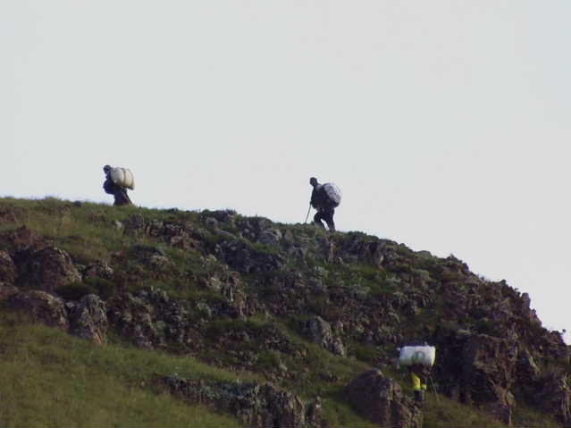 On the way back to the cave, high on the skyline we saw some uninvited people traversing the mountain top with their illegal goods of trade.