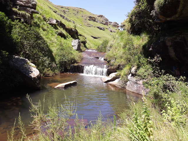 Our group of 11 set off on a great sunny morning to head up around and past Gladstone’s Nose to the hidden areas of the Kamberg plateau. The views of the Giants Castle on the horizon , and the great green Kamberg valley below us were really great. The first bit of a hill climb was up towards Gladstone’s Nose
