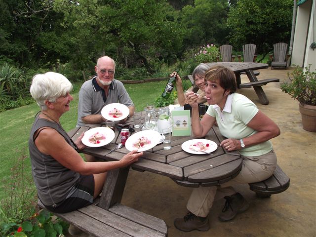 Now this is the way to end a hike - Christie, Dave, Margaret and Brigitta (Keith behind camera and John looking for other "Vices"