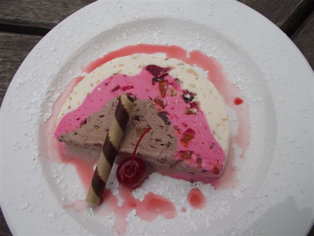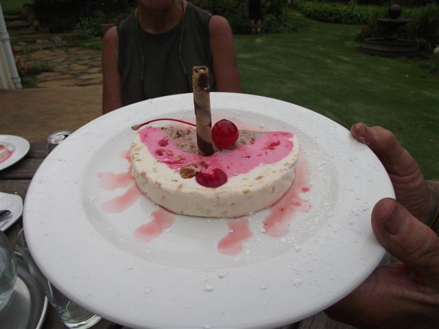 I opted for a very welcome quart of Windoek Draft but others could not resist Roy's cassata which looked and tasted delicious - it should be noted that Roy is dedicated to the village and to conservation of the area.