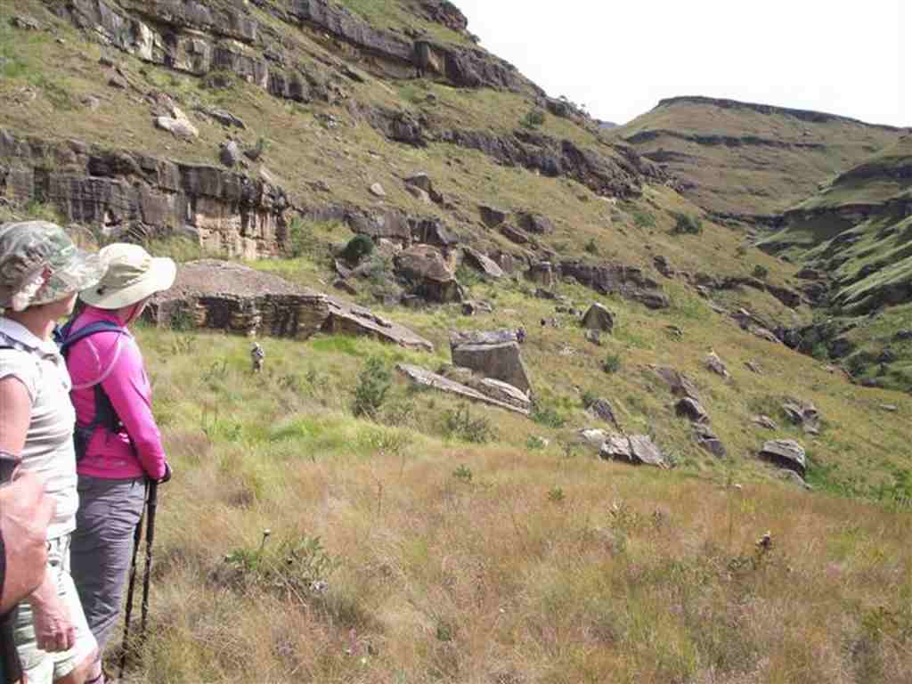 FRIDAY - We had full backpacks, our sleeping gear, food etc and daypacks for the next 3 days so had to carry both packs from the KZN Wildlife office to our overnight hut – about 1 km but quite heavy and cumbersome. We offloaded our gear into 5 basic rooms in the hut complex. Each room taking up to 6 people so we had plenty of space with mattresses on the bunk beds – luxury! We set off around 10h00 in the reverse direction of the Giants Cup Trail – (this is a must for anyone who hasn’t experienced this 5 day trail) as far as an old Jeep track. The original track is now derelict, very rough and a bit hard on the feet and we re-traced its original route.