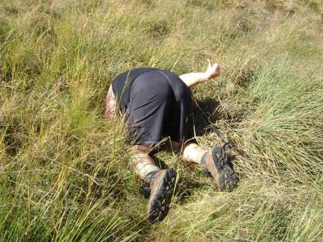 After lunch we hid our backpacks and set off across the river to go and explore the countryside. We came across several very deep ditches across which we had to jump. Not without an incident as can be seen with me on all fours.