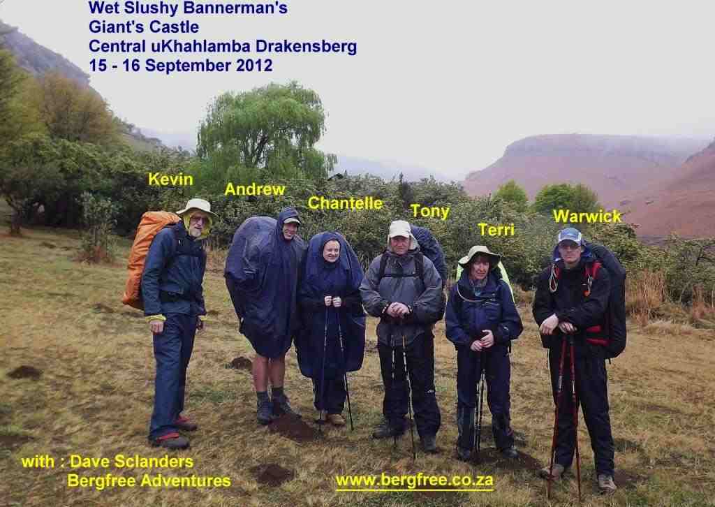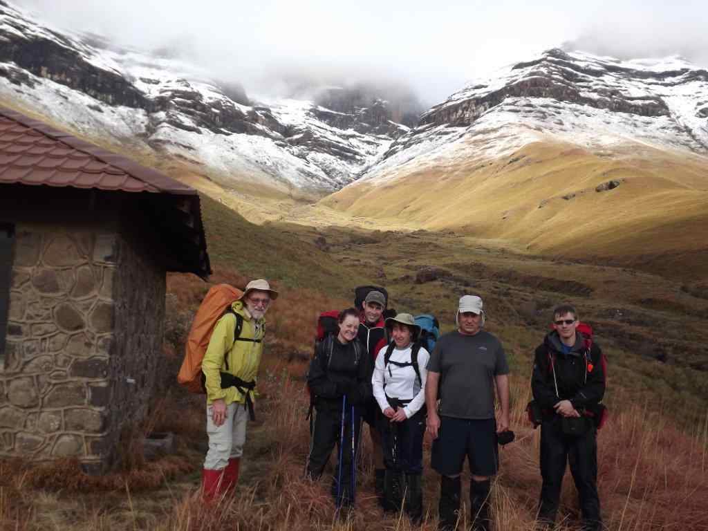 The weather forecast on all the TV and weather forecast stations forecast a bad week end ahead, with rain, snow and low temperatures. Here we were planning to hike to Bannerman’s hut with another party, and when I was there last week, the berg was covered in snow – but with good weather -- see Newsletter 159. But, one cannot make decisions about the weather a long way away from the actual place, one can only go prepared for any weather, then once there , make the final call. So early Saturday morning we left our various home in bad weather, met at Giant’s Castle car park – in bad weather, and decided, that having come all this way , it was pointless going home so lets make the best of it , and hike to the hut – in bad weather – tomorrow will be better.