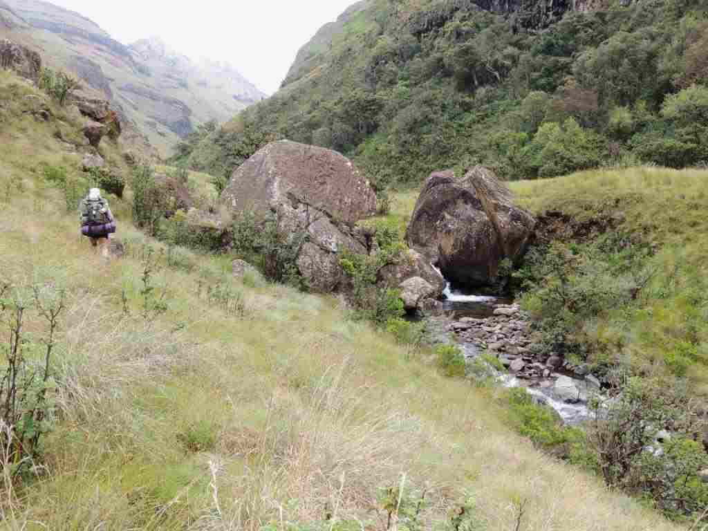 Bushman’s Nek Cave in the Southern Berg is one of those caves that never really drew my attention , or , sort of called to be visited. Then the opportunity came to take a hike up to this cave. Information Keith, who was to lead the hike was that it was not a hard hike, and although the altitude of the cave seemed to put it high up a step valley, he said that the hike was a steady up hill all the way to cave, with numerous river crossings to negotiate. If the rivers were full, taking boots off at many of the wider streams could slow our progress somewhat. Also the cave would only sleep about 10 people in some comfort. Others who wanted to come had to bring tents.