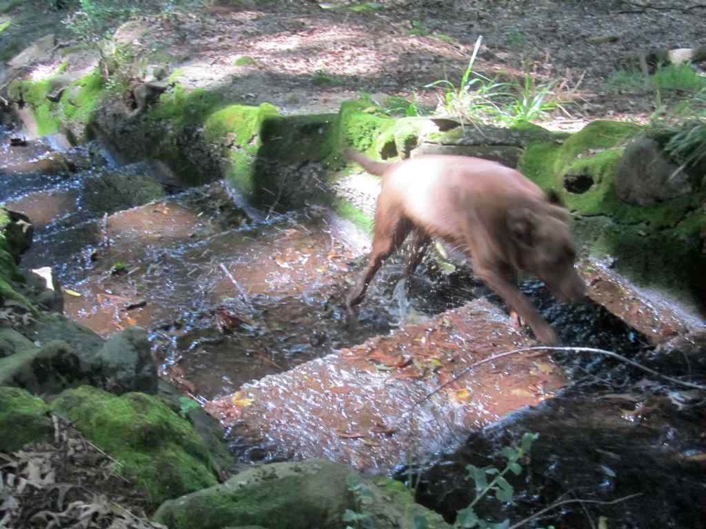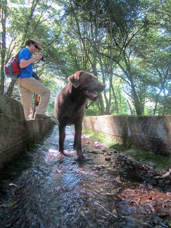 Pic 4 - Once on the track it leads to an man made water fall - Carolee's chocolate labrador "Sundae" is at home in the water of the channel leading down to the falls