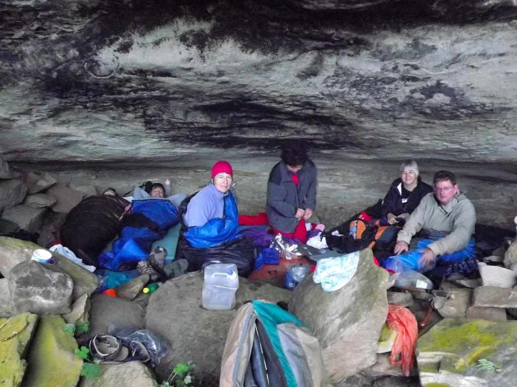 As we had left a little later than planned we walked for longer than usual in the heat of the day. When we finally reached the cave some of the party ere only too happy to drop their packs, lay out the sleeping bags, and have a good rest before anything else.