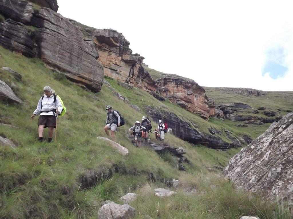 One of the facts of hiking in the berg, is that sooner or later you will have to climb, some climbs are easier than others, some have paths, some don’t. We had a steep climb without paths, just following old eland tracks across the mountain side. Loose stones and looking for a good foothold up a steep slope does not give one a chance to look around and enjoy the scenery, so one needs to take several breaks to enjoy ones achievements of the moment.