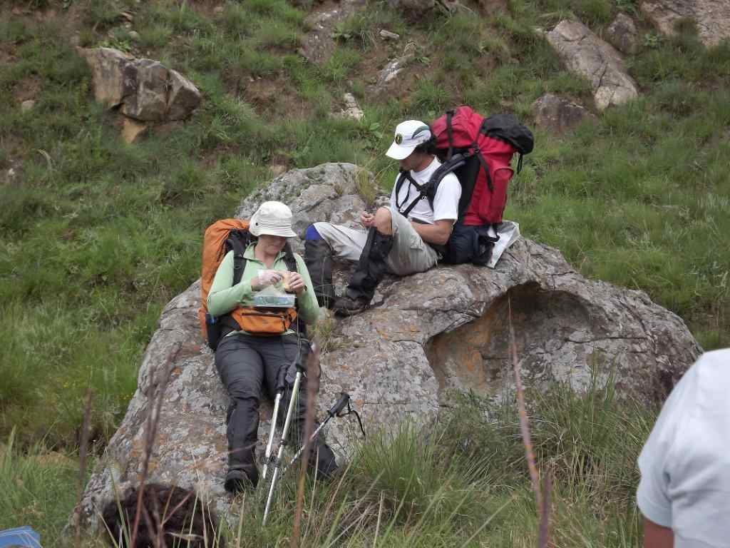One of the problems with hiking at Kamberg is that the area is prone to heavy mist, that can last for many hours. Unless one knows the area well, you could end up with a bit of a problem in getting out. The paths are game tracks, and not shown on the maps. We awoke with a heavy, low thick wet mist not the ideal hiking weather, and set off for home . Fortunately by mid morning it had lifted , and hiking became more pleasant – but due to the wet grass from the mist, wet boots were the order of the day.