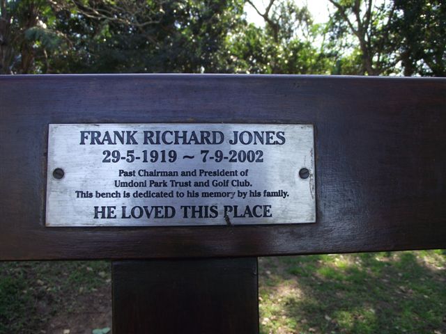 33. A donated bench in memory of a past Chairman and President of the Umdoni Park Trust and Golf Course