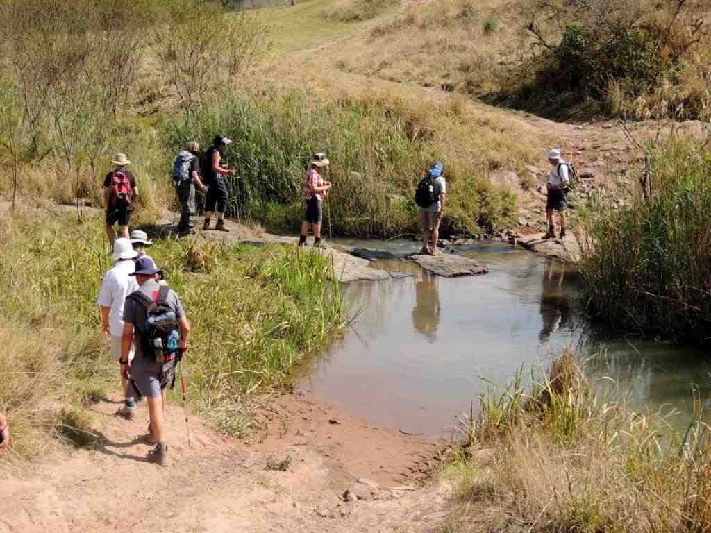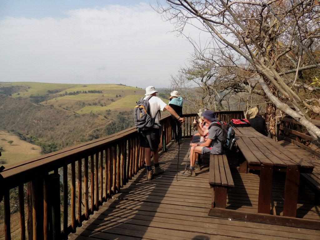 Bushy and Pat , founders of the well known Midlands Hiking Club, were to lead another great day hike in the KZN Midlands to Gwahumbe Game Reserve. In this Game Reserve well laid out roads and paths take hikers from the top of the valleys , down into the riverine bush and then pack up to the office and reception area of the game reserve where welcome cold beers and other cold refreshments can be enjoyed at the end of the days outing.