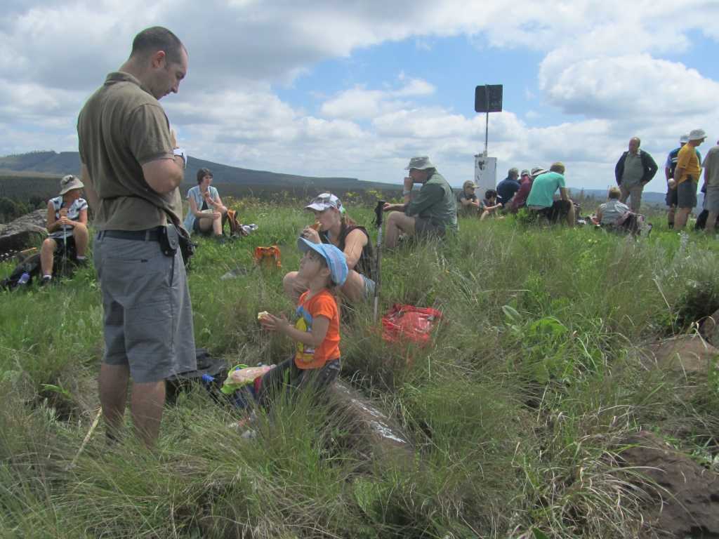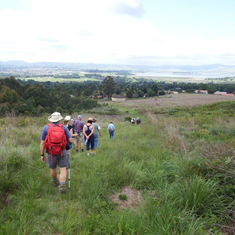 The second part of our walk included a section up Curry's Post road, then a scramble up a banking to the bottom of Beacon Hill (a landmark in Howick), then there was a bit more uphill walking alongside trees to the top, where we made our way to the actual Beacon - from here there are magnificent views towards Midmar Dam and in fact the whole of Howick and surrounds - so we stopped here to have some snacks and take in the views.Whilst resting we met Eve Hughes of "Friends of Beacon Hill" who was leading some people on the monthly 2 hour walk to inspect all the flowers etc. Again this dedicated group of local people do a marvellous job in protecting this very special area. After our snacks and drinks we made our way down the other side of the hill, reaching the main Howick north road via Lake View Road.A short walk along the main road verge eventually led us close to our next section of our walk.