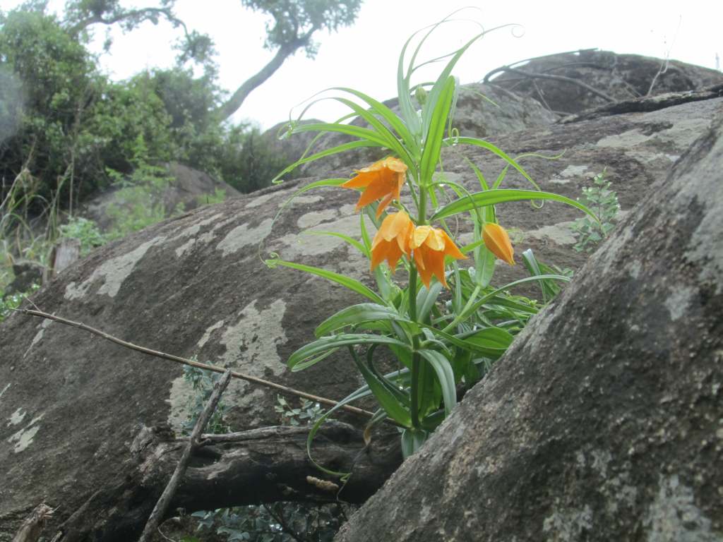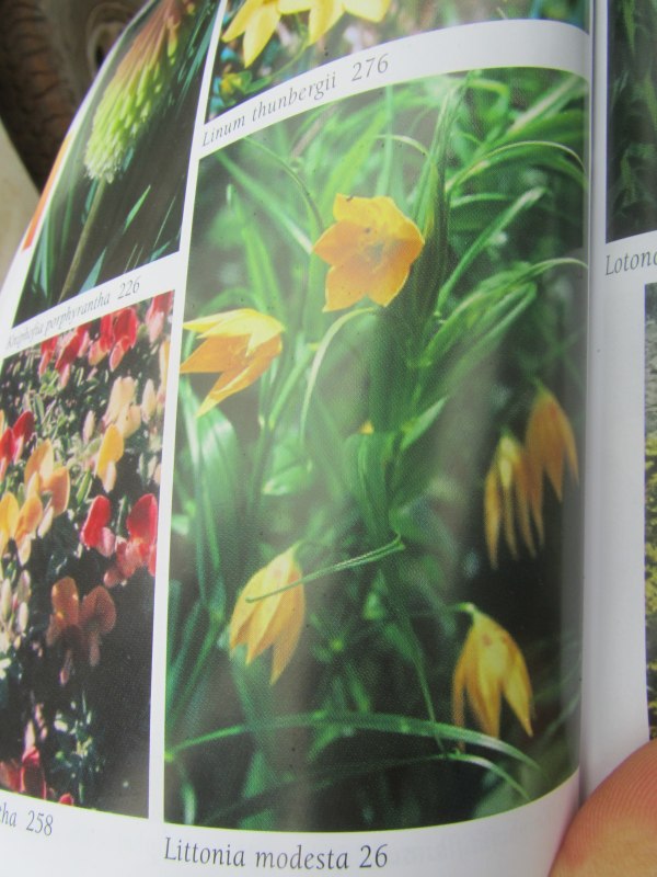 Pic 35: Jill discovers an attractive yellow/orange flower - later shown to be "Littonia modesta"
